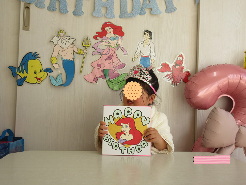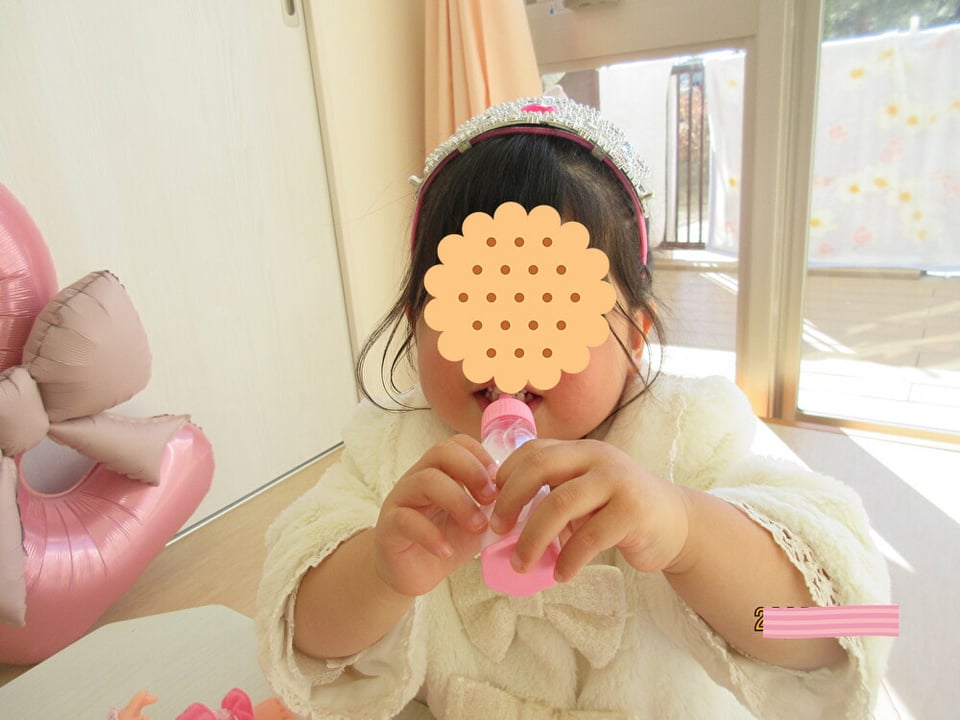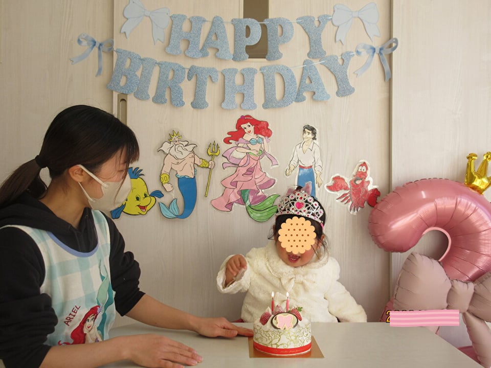 あーちゃんと一緒にろうそくの火をふーっと一息で消せました