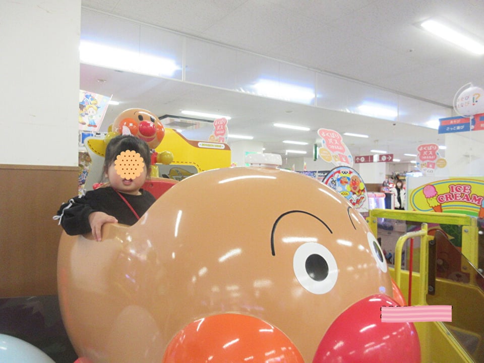 ゲームセンターにも立ち寄って、アンパンマン号にも乗りました