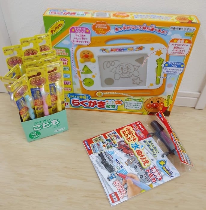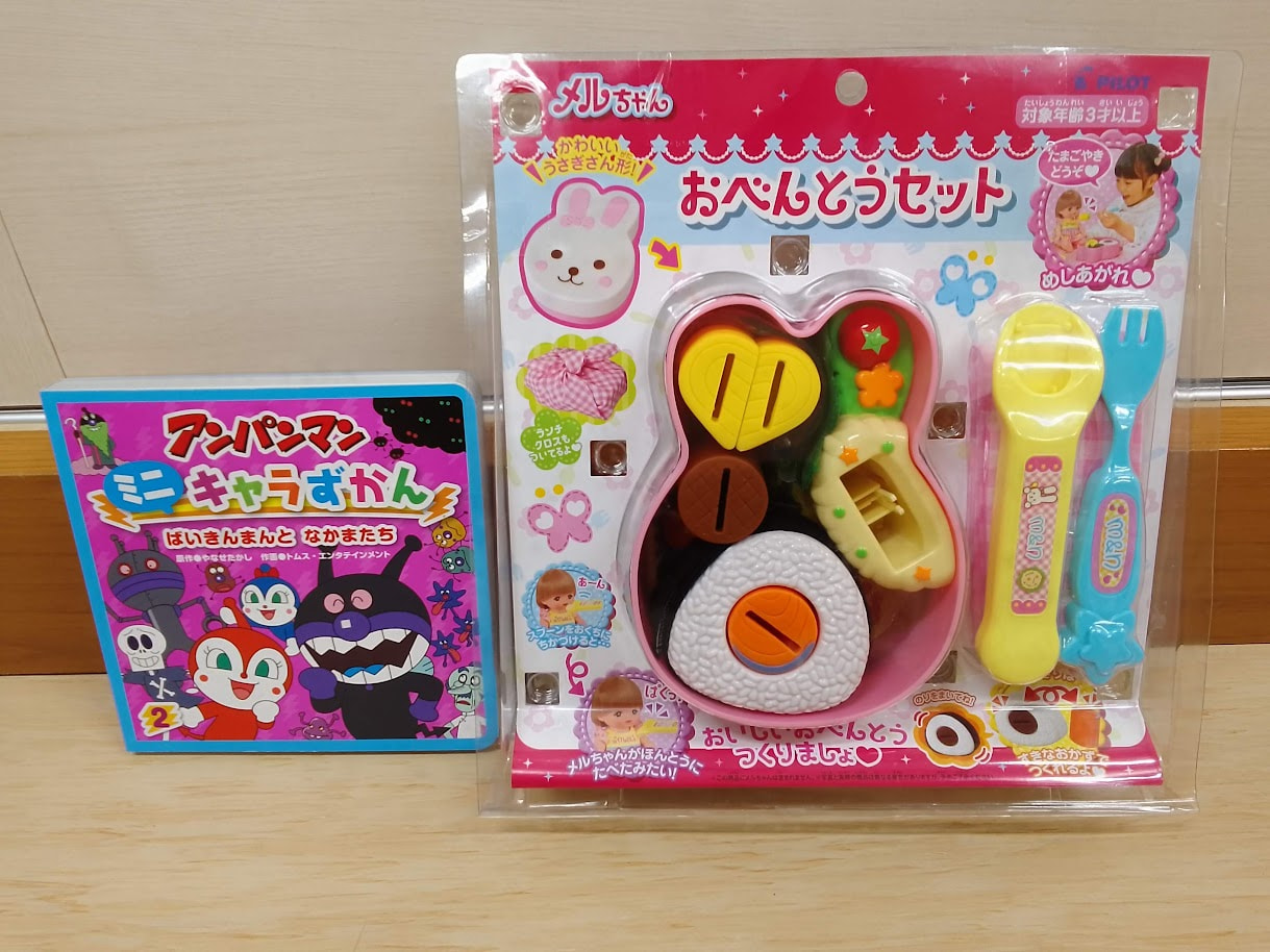 *アンパンマンミニキャラずかん、こども歯ブラシ、らくがき教室、メルちゃんおべんとうセット・水ぬりえ