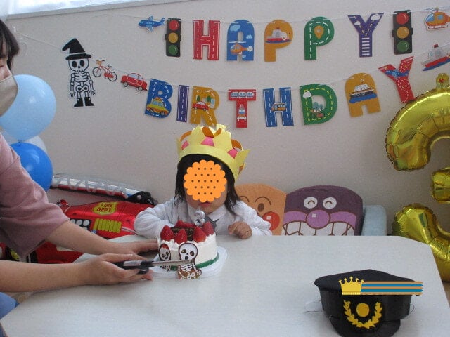 お部屋の装飾は対好きな乗り物でいっぱい!主役は警察官の制服を着ました🚓🚨
