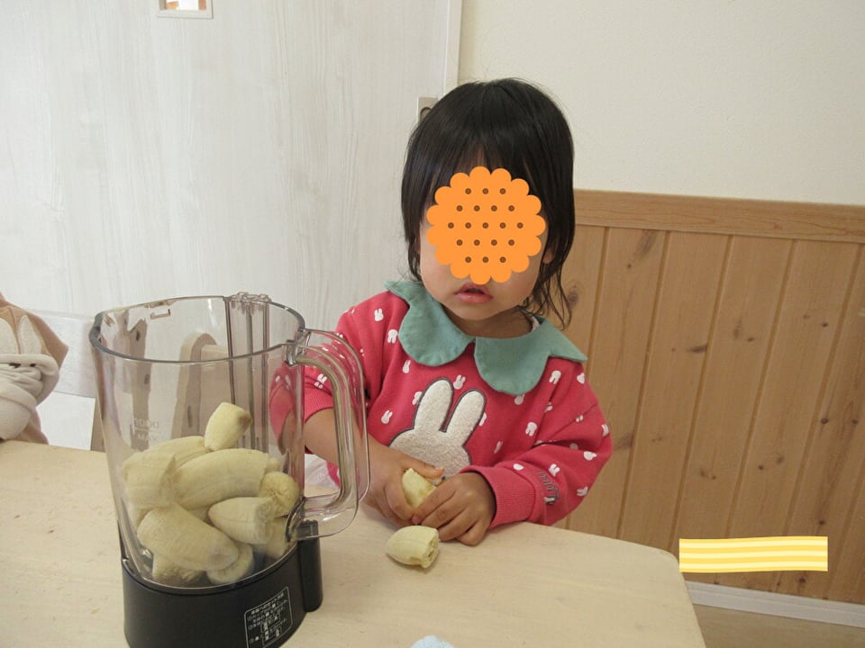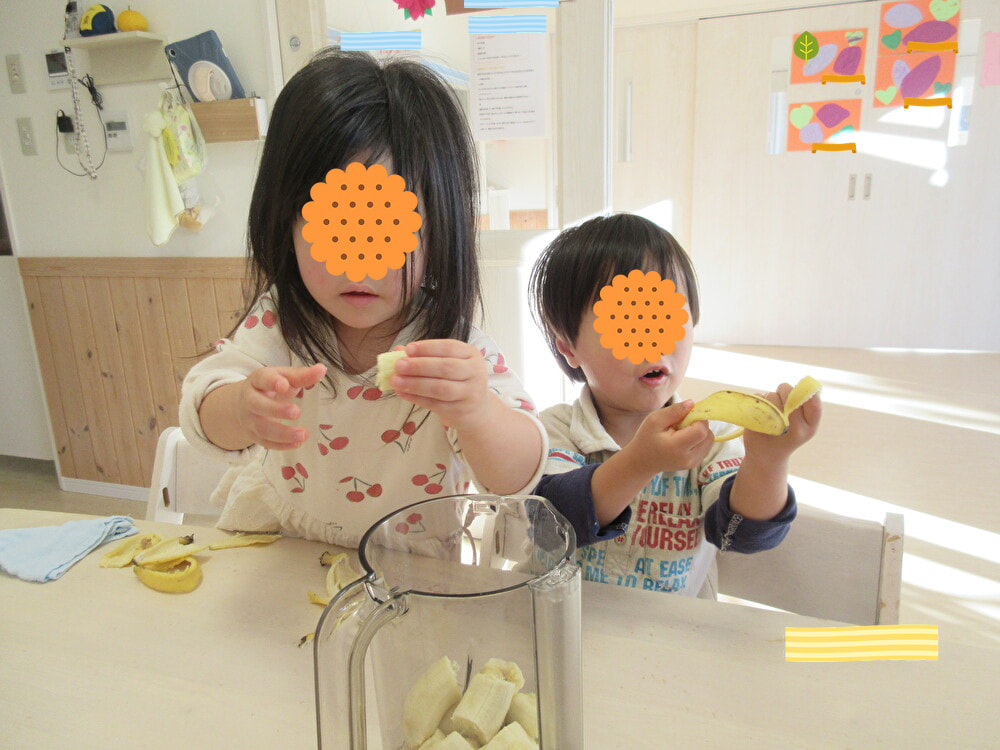 そのまま食べても美味しいバナナですが、おやつの時間にみんなでバナナジュースを作りました!