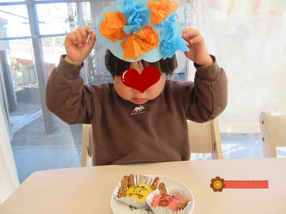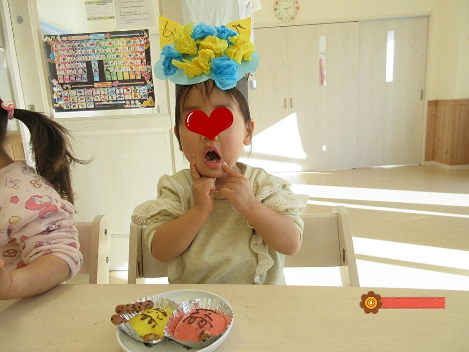 いつも食べている蒸しパンをかわいくデコレーションしてみましたが、みんな喜んで食べてくれました♪
