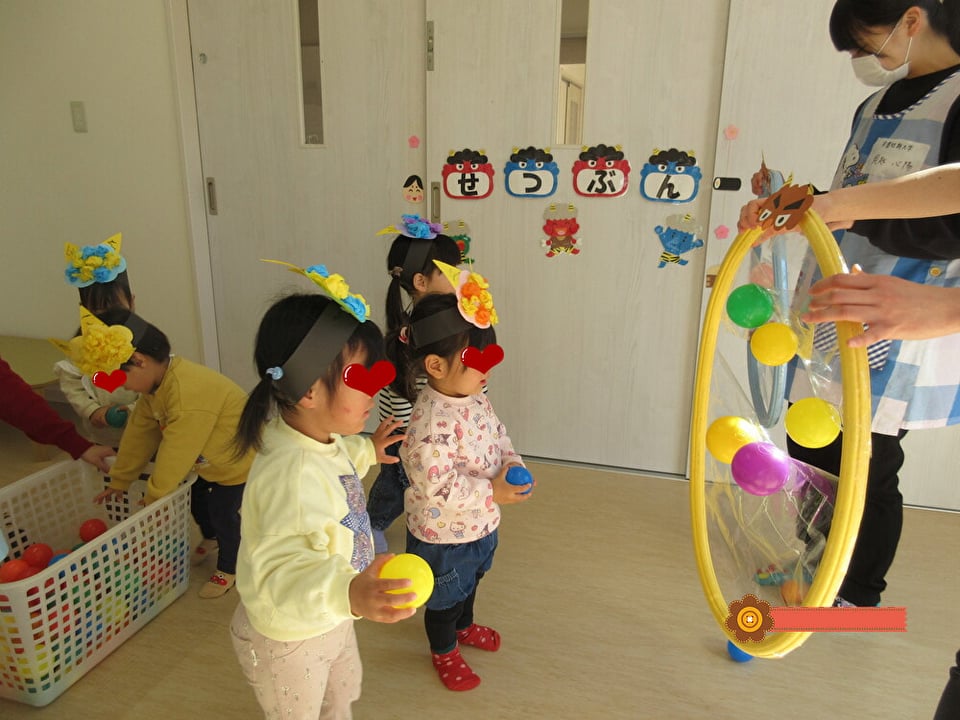 「まめまきの歌」を歌って紙芝居を楽しんだ後は・・・