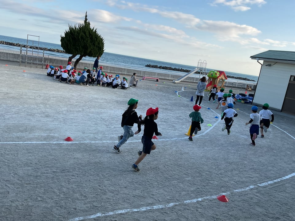 普段から体力づくりをかねて園庭を走っているので、ほとんどの子が楽しみにしていたようでニコニコしながら走っている子もいました😊