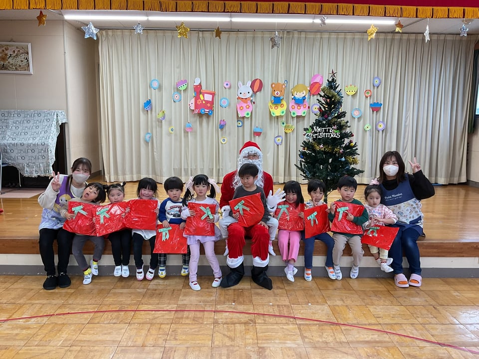 ももぐみ、ちゅうりっぷぐみの小さいクラスにもサンタさんがきてくれました🎅