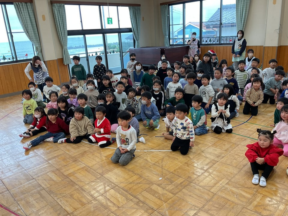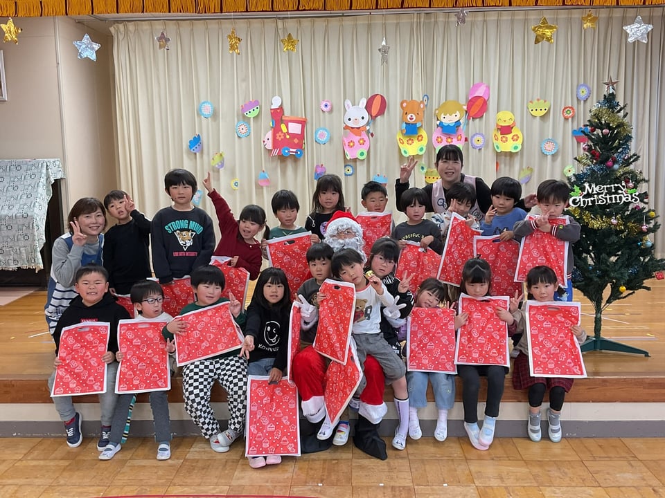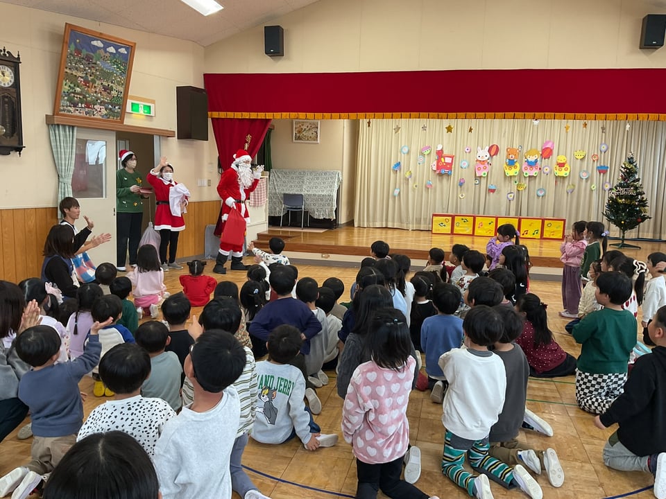 最後はすみれぐみ、あおぐみ、あかぐみ、みどりぐみのクリスマス会にサンタさんが来てくれました🎅