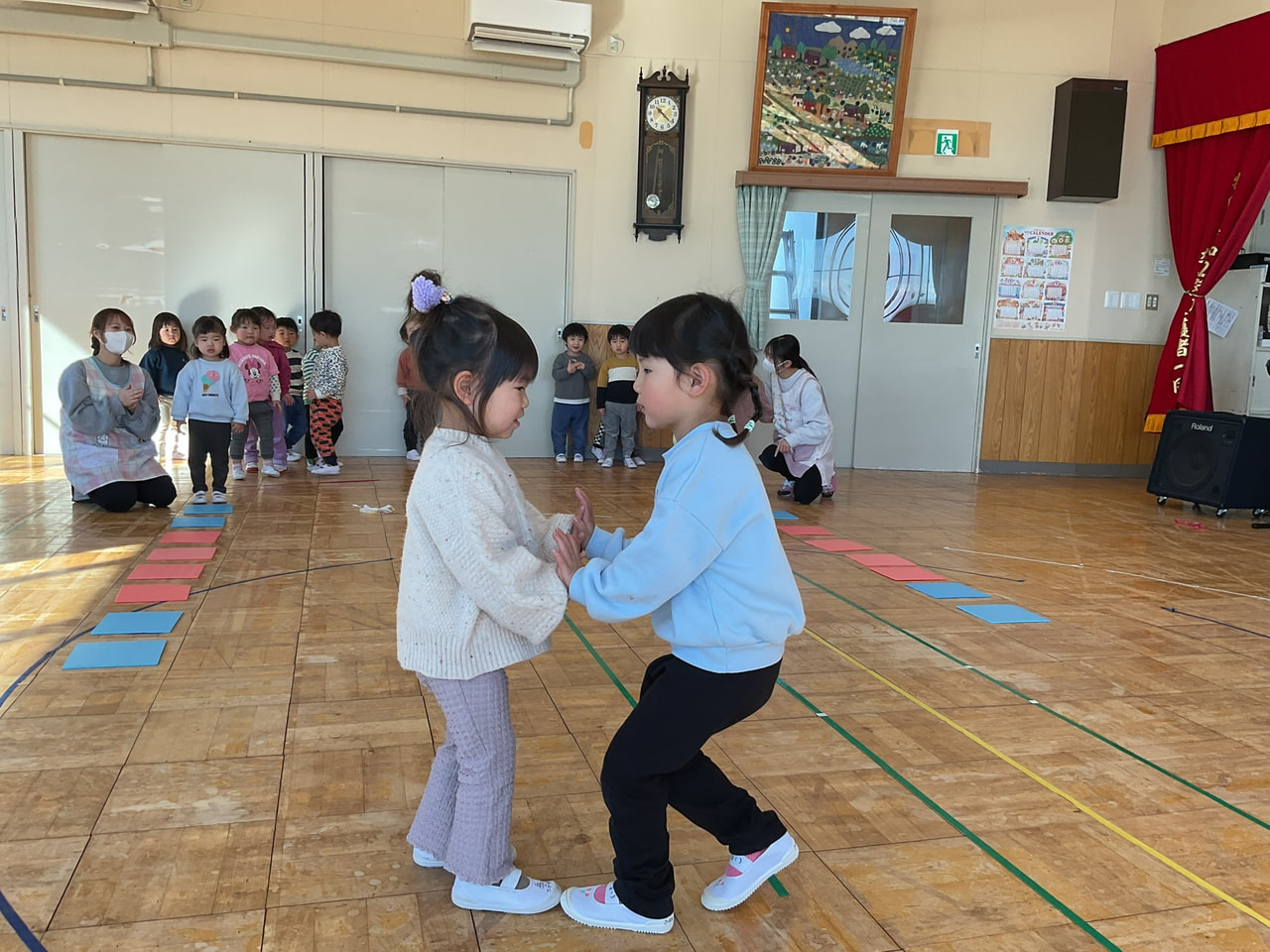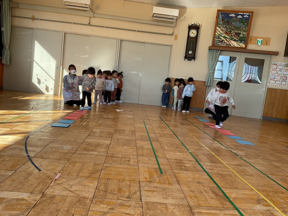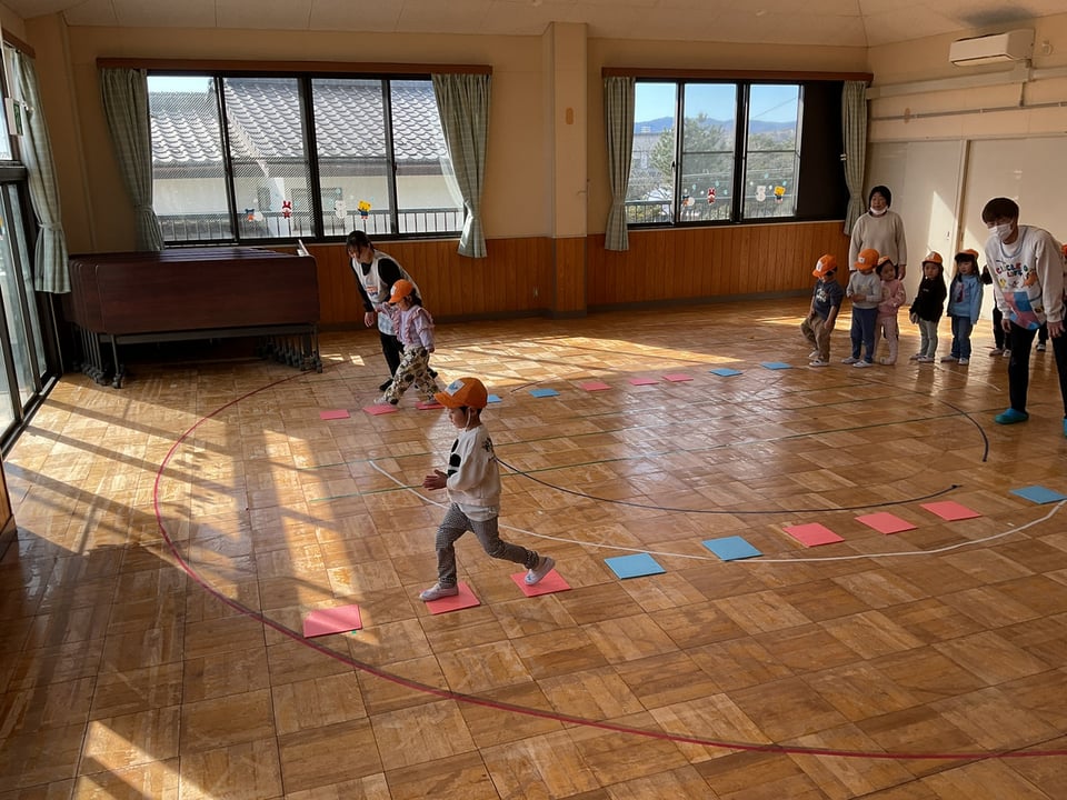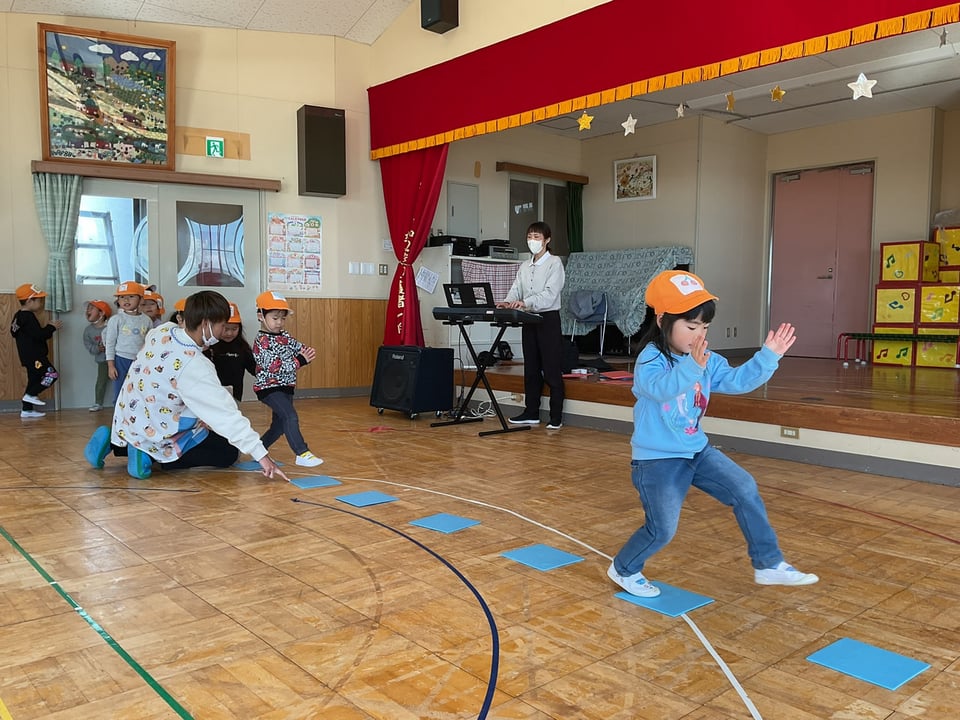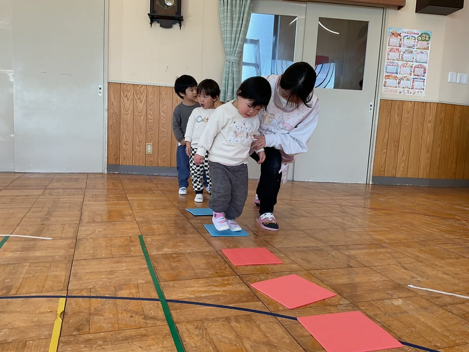 今回は音楽に合わせてパネルの上を歩くという遊びをしながらリズム感を養っていました👌