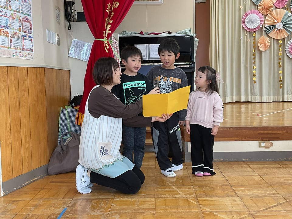 保育園のおともだちからも「せんせいとおともだち」のお歌♪やフォトフレームのプレゼントを行い