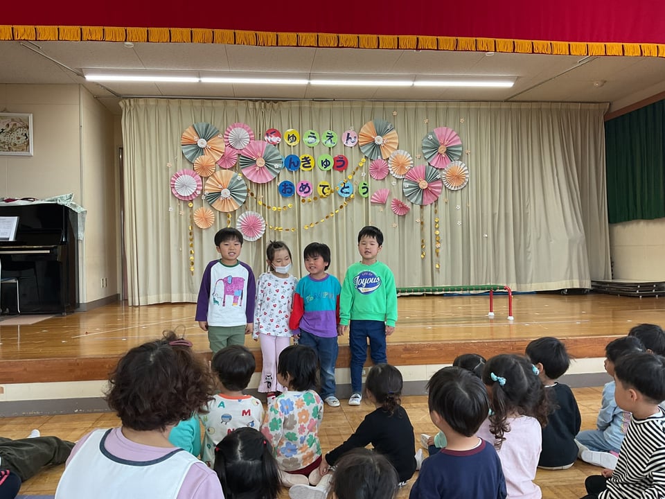 保育園にいたお友だちも4月から一つ大きくなり新しいクラスに進級し一緒にお祝いです。