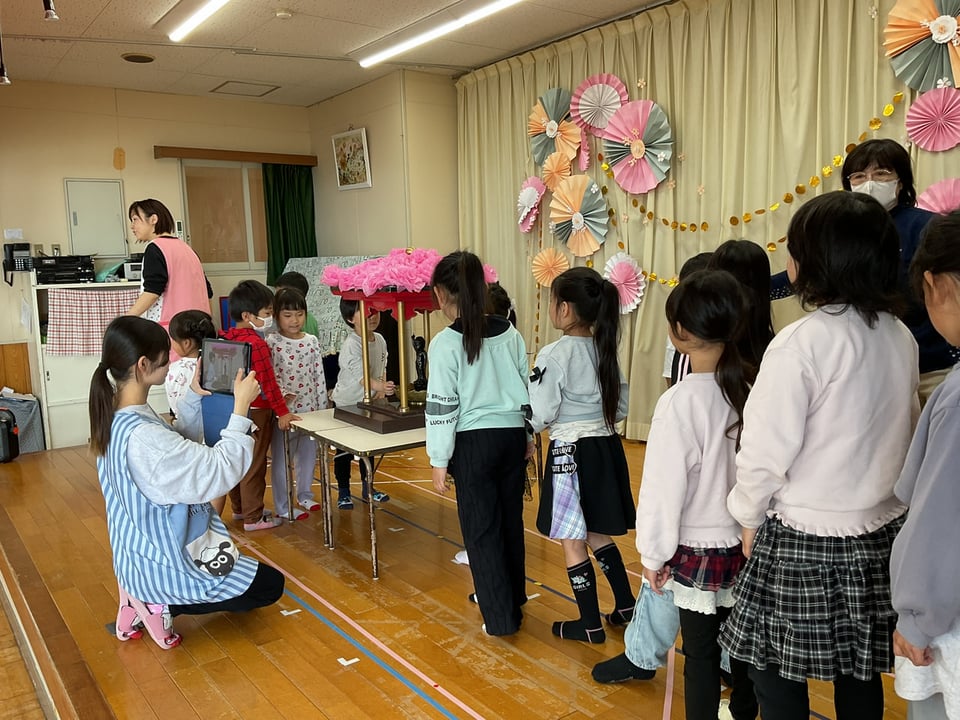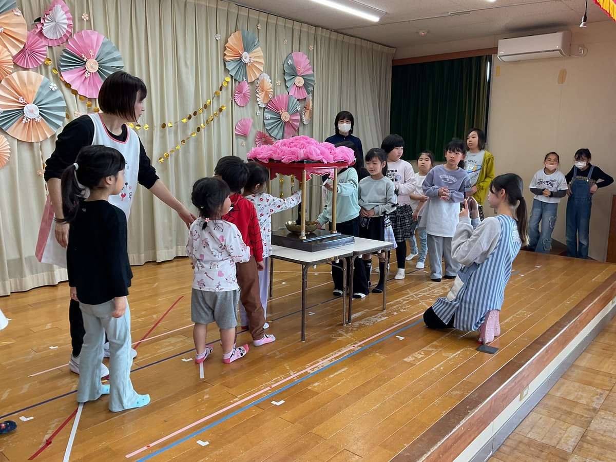 花まつりはお釈迦様の誕生をお祝いする行事で、保育園では願成寺の住職がみょう先生が、お釈迦様のお話をしてくれたりお経を唱えてくれました。その後みんなでお釈迦様にお願いことをしながら甘茶をかけます🍵