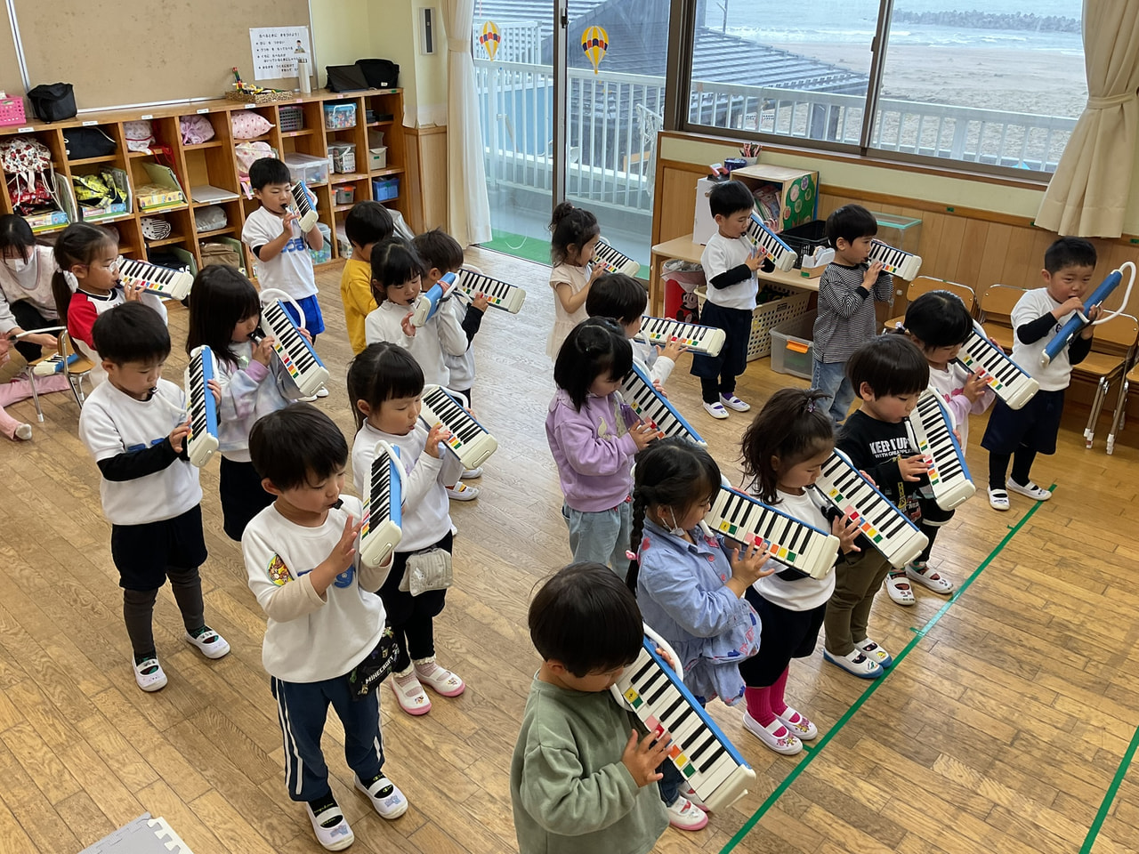 さくらさん(4歳児)はメロディオンの練習です。