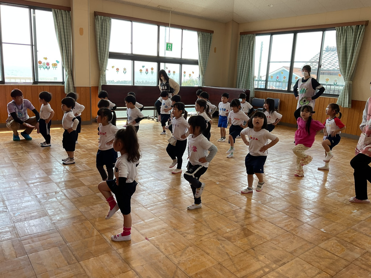 毎日お集まりの時に基本動作の動作の練習はしていますが講師の先生の前ちょっぴり緊張しているようでした😊