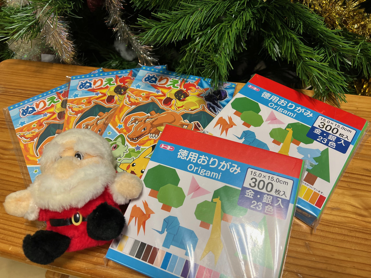 新たなぬりえとおりがみのプレゼントを目にした子どもたちは大喜び!