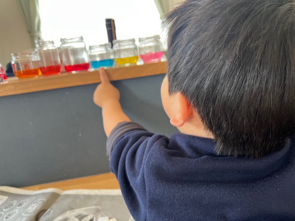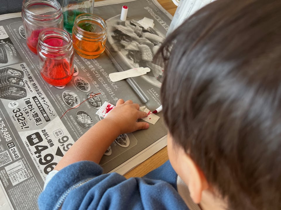「ぼくがやったんだよ。」「色をまぜてみたいな。」