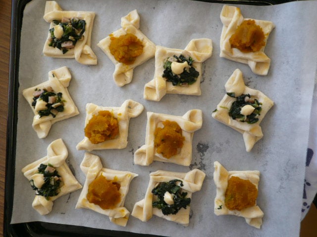 形ができたら、かぼちゃやほうれん草の具材をのせていきます✨