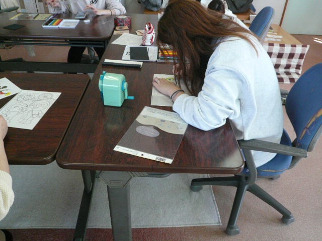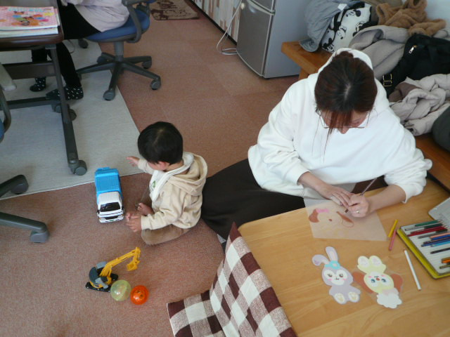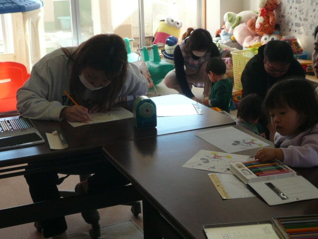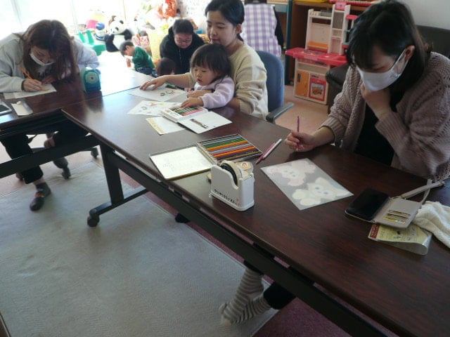 ママたち、お子さんの好きなキャラクターを選んで、真剣に描いています✨
