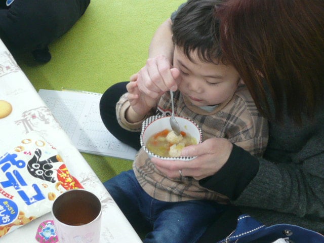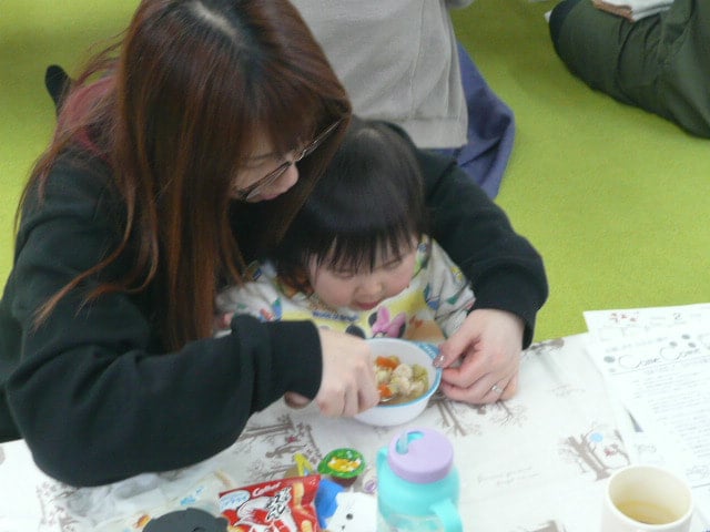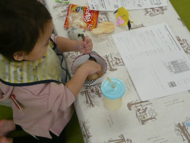 また今日は、同仁会乳児院の栄養士さんを講師にお招きしての、離乳食体験がありました。