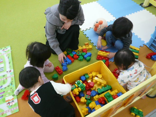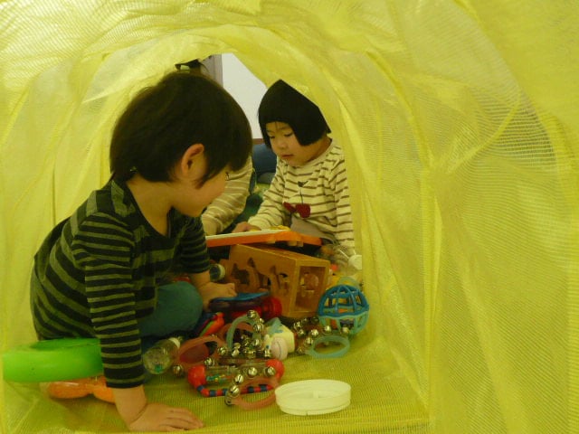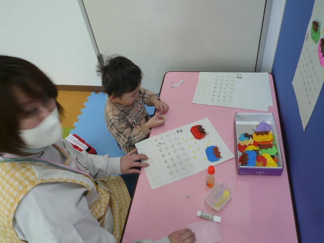 自由遊びの時間は、ママと一緒に手型・足型アートを行ったり…