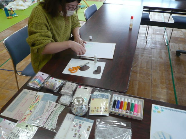 今日の製作は〝命名色紙作り〟今回参加して下さったのが、今日で4ヶ月✨のお子さんとママだったので、手型・足型も一緒に…❤
