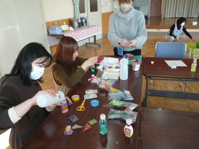 ママたち、お子さんのために色やビーズを選ぶのに真剣です(*^_^*)
