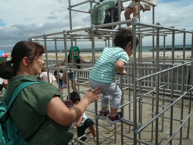 ちょっぴり風の強い日ではありましたが、保育園のお友だちと一緒に元気いっぱい、お庭で遊ぶことができました。