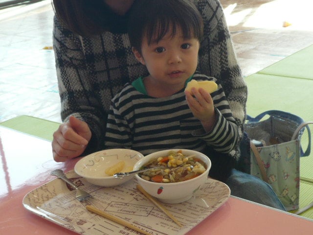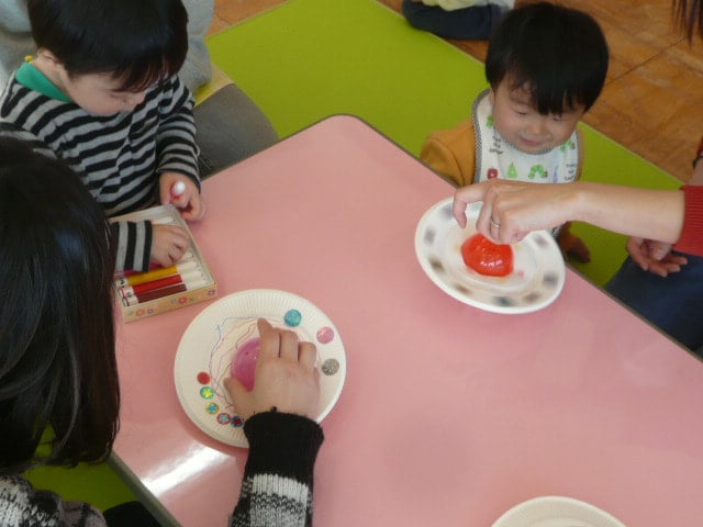 - ちびっこ広場☆コマ作り☆給食体験