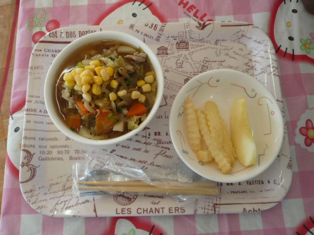 *野菜たっぷり醤油ラーメン *フライドポテト *りんご