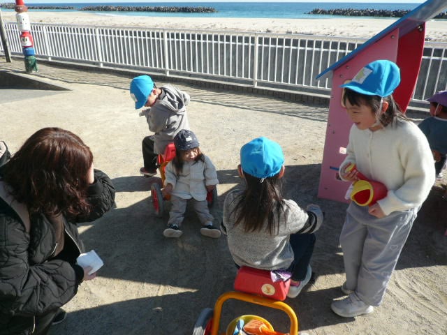 今日はお天気も良く穏やかな日で、お庭に出て遊んでいた保育園のお友だちと一緒に遊ぶことができました(*^_^*)
