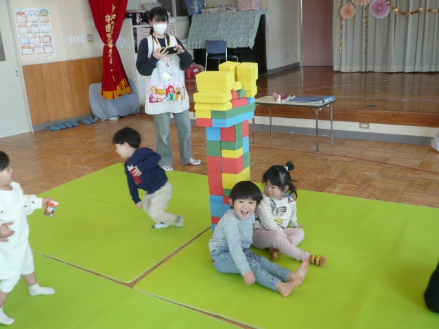 ブロックもみんなで協力して積み上げたり…