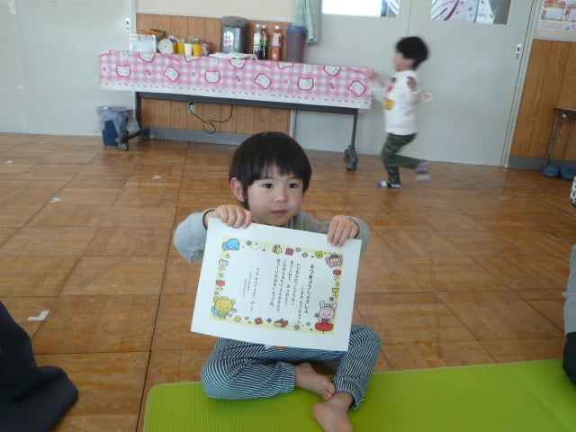 ちびっこ広場は、保育園や幼稚園の集団生活をちょっぴり体験していただくことをコンセプトに行っているので、最終日の今日は、ちびっこ広場の卒業証書とメダルをお渡ししました✨