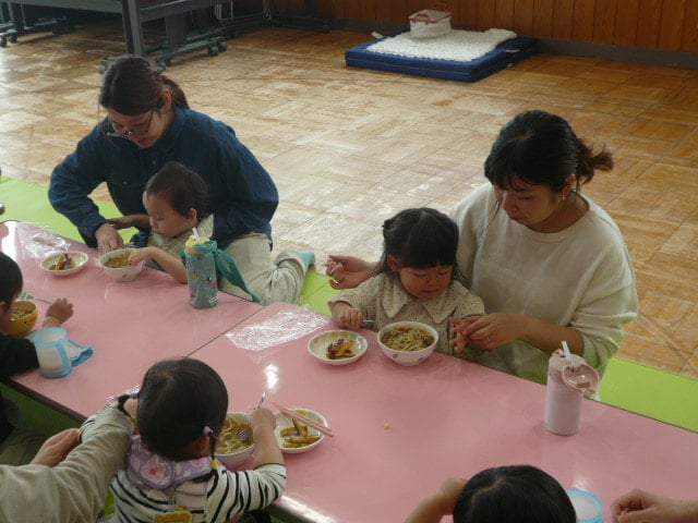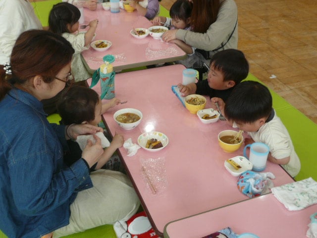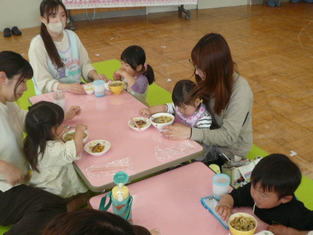 ちびっこの参加者の間に保育園のお友だちも入って、みんなで仲良く食べました❤