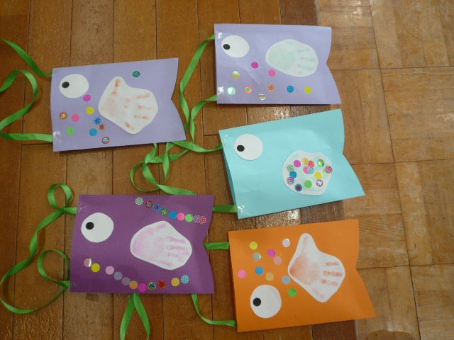 手型や画用紙の目、シールをペタペタ…たくさん貼ったらできあがり✨