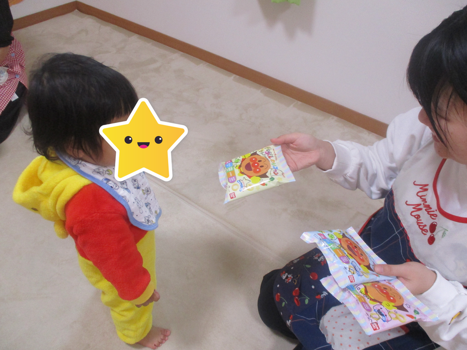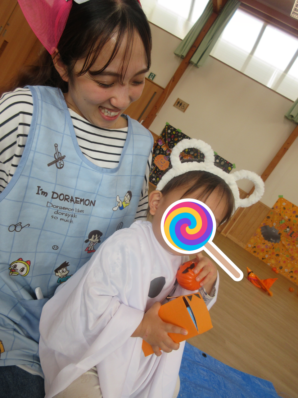 乳児さんは、フォトスポットで写真を撮ったり、お菓子を食べたりしました。