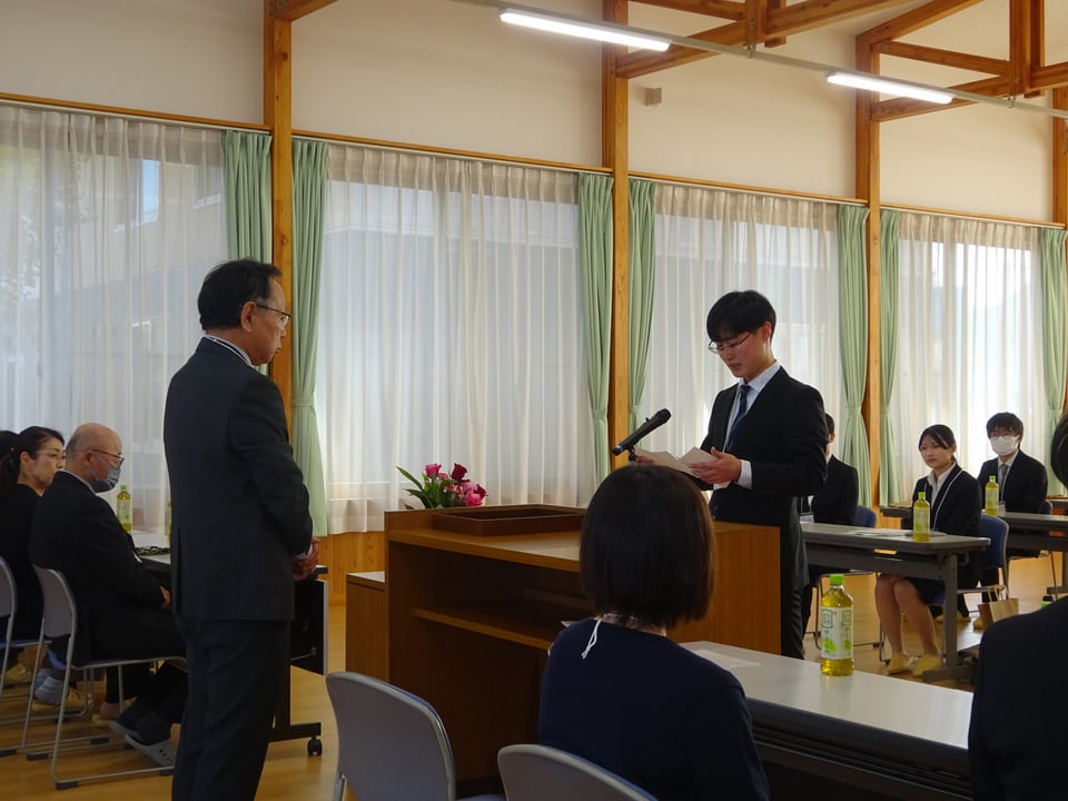内定式では内定通知が授与され、内定者代表あいさつでは職員としての決意が表明されました。